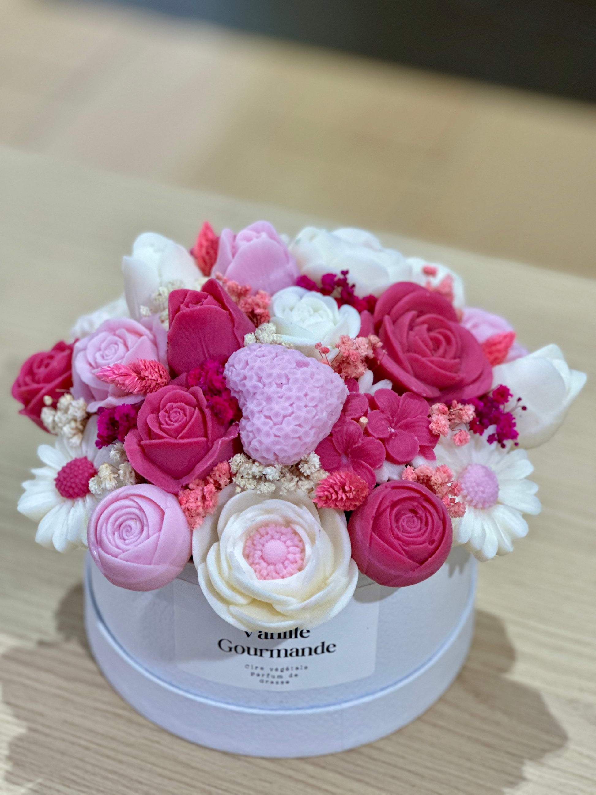 Chaque élément est délicatement façonné à base de cire végétale et de parfum de Grasse, pour une expérience visuelle et olfactive unique. 💐