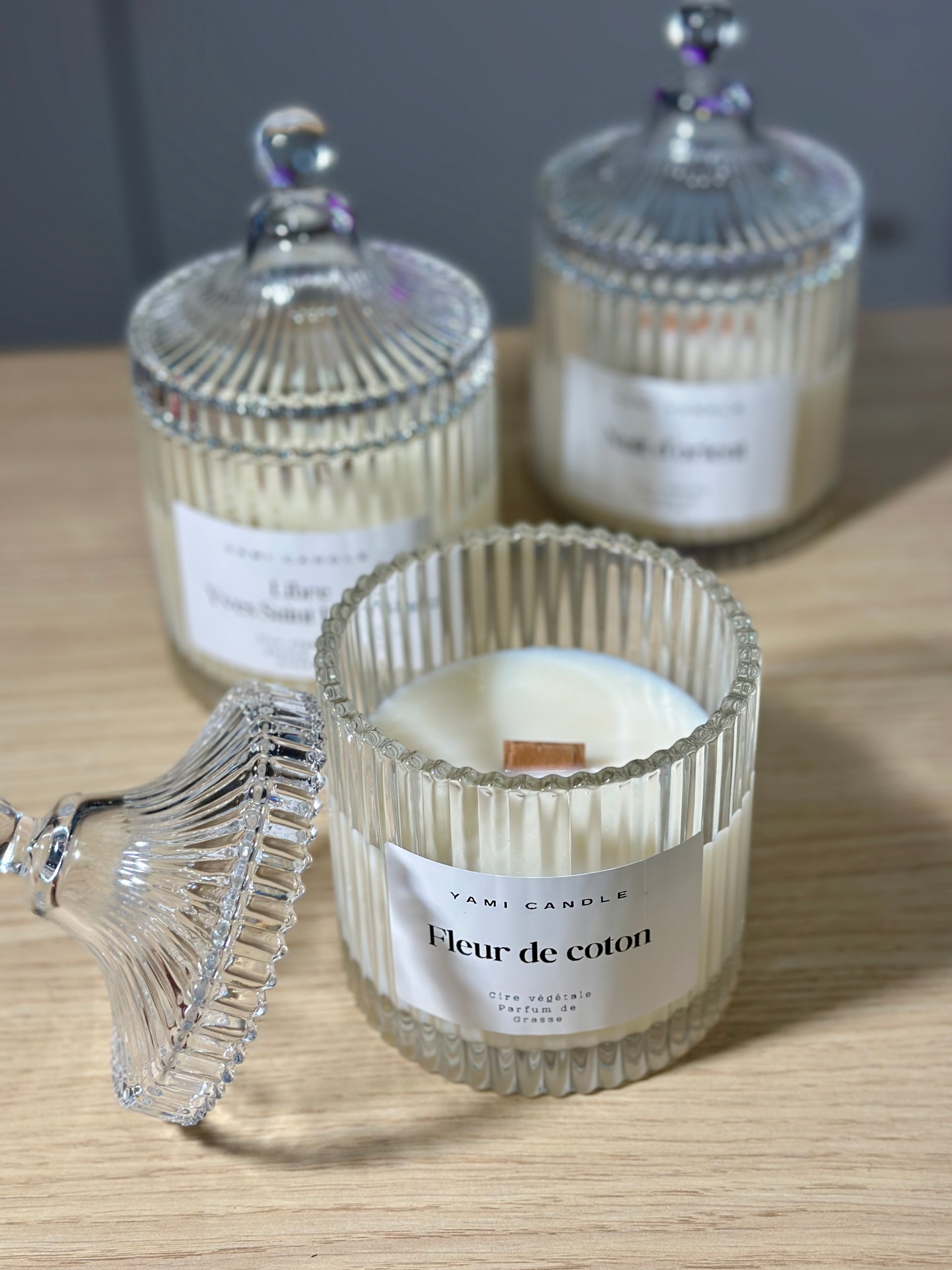 Découvrez cette bougie raffinée, présentée dans une jolie bonbonnière en verre accompagnée de son couvercle.