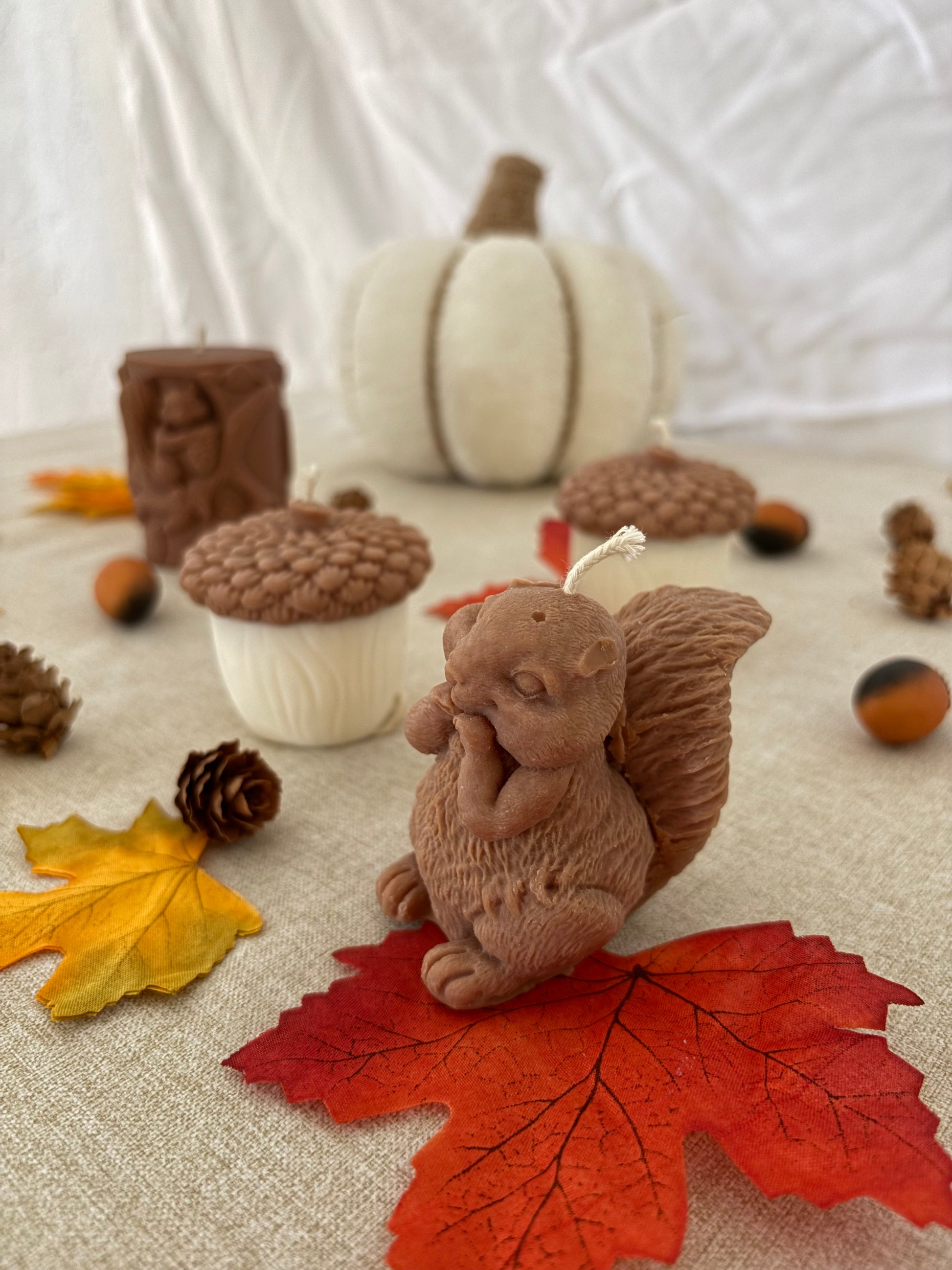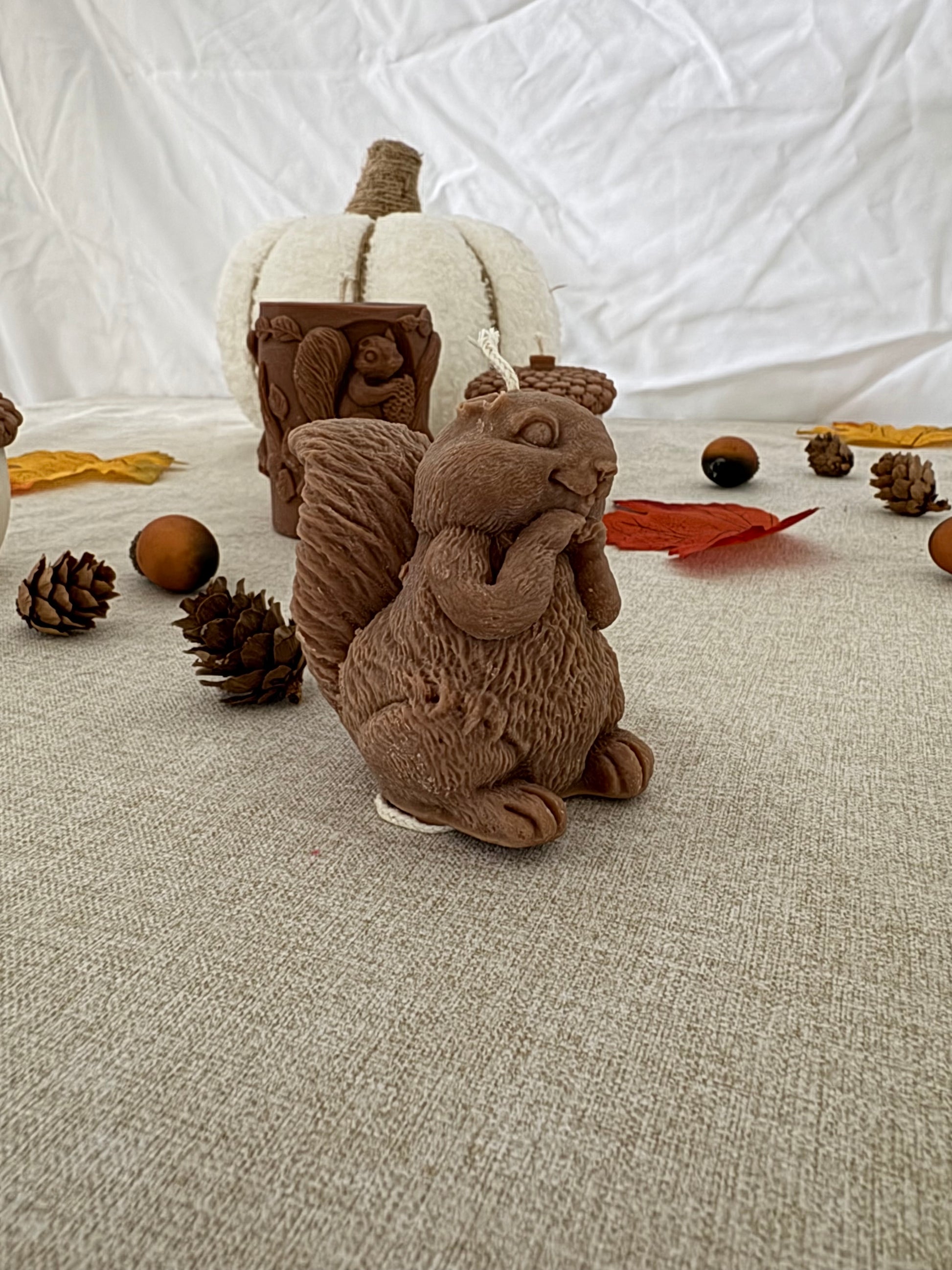 ✨ Cette bougie marron en forme d'écureuil capture l'essence des forêts automnales avec sa silhouette délicate et sa texture réaliste.