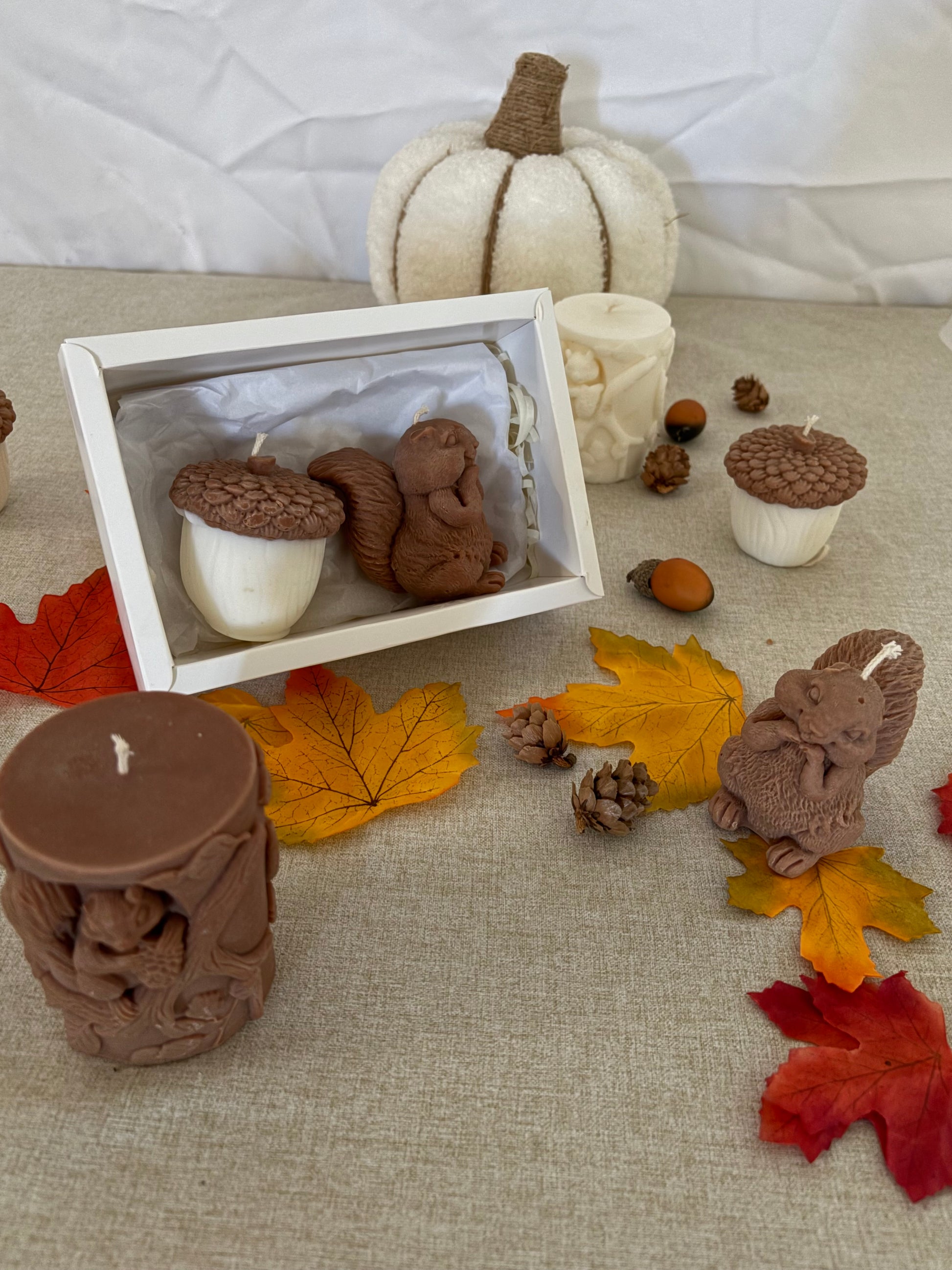 ✨ Plongez dans l’ambiance chaleureuse de l’automne avec ce coffret original réunissant un écureuil Scrat et son gland.