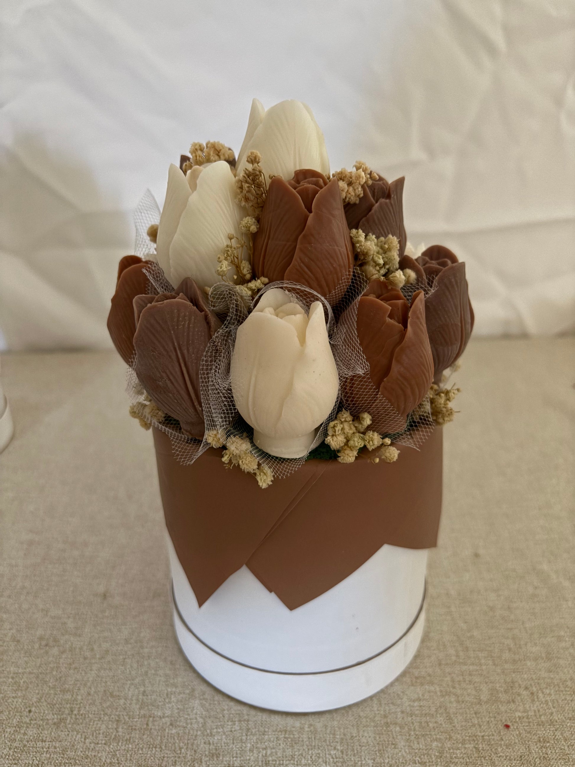 ✨ Cette composition florale réunit des tulipes, minutieusement façonnées en cire végétale et enrichies d’une fragrance de Grasse.
